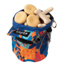 Torebka na przysmaki Materiał: poliester Łatwa do zamknięcia - ściągacz sznurkowy Możliwość przymocowania torebki - karabińczyk Łatwe czyszczenie Wysokość 9 cm Średnica 7 cm Kolor: losowy